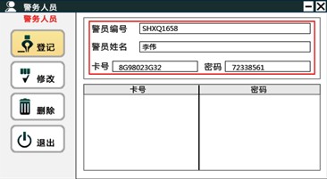 2)警務(wù)人員管理 點(diǎn)“登記”項(xiàng),系統(tǒng)會(huì)自動(dòng)提示您登錄該人員的各類信息。