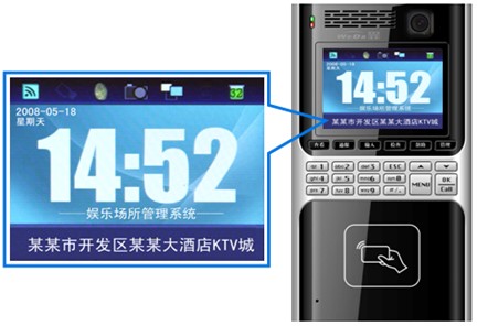 2、 待機(jī)界面:終端待機(jī)時(shí)顯示系統(tǒng)時(shí)間和本場所名稱,并在屏幕上顯示連接狀態(tài),是否有未讀通報(bào)等信息。通過設(shè)置可以選擇待機(jī)界面顯示時(shí)間或播放公益廣告(MPEG)。 3、 刷卡:刷卡后顯示刷卡人姓名,刷卡時(shí)間、從業(yè)人員IC卡號(hào)等信息以及檔案照片和拍照照片。
