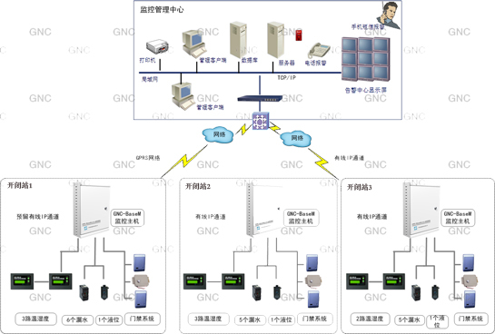 針對電力行業(yè)無人值守變電站監(jiān)控中存在的這些問題,本公司為實現(xiàn)多區(qū)域集中管理,統(tǒng)一監(jiān)控并迅速做出反應(yīng),降低維護成本,提高運行工作質(zhì)量等改革目標,推出全新的基于自主知識產(chǎn)權(quán)的變電站無線監(jiān)控整體解決方案——GNC變電站無線監(jiān)控系統(tǒng)。
