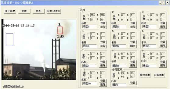 環(huán)保項目的視頻服務(wù)器產(chǎn)品,要求具備林格曼黑度分析功能,對煙囪的排煙黑度進(jìn)行實時分析,如圖所示: