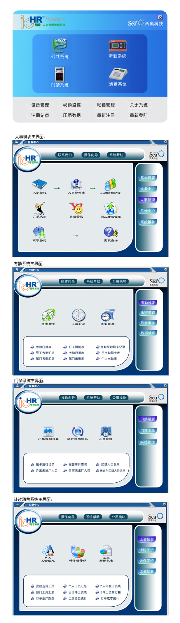 包括人事管理、考勤系統(tǒng)、門禁系統(tǒng)、計(jì)次消費(fèi)系統(tǒng)、薪資系統(tǒng)等子系統(tǒng),各個(gè)模塊可動(dòng)態(tài)組合使用,用戶可根據(jù)實(shí)際情況,注冊所需的模塊,輸入注冊碼注冊后,未注冊的模塊會(huì)自動(dòng)不可見,比如:如果只注冊考勤模塊,則門禁、薪資、消費(fèi)系統(tǒng)會(huì)看不到,未注冊時(shí),所有模塊均可使用!