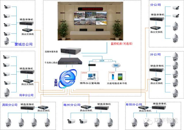 蒙城縣萬佛塔水泥有限公司安徽省有多家分公司,要求所有監(jiān)控從總公司集中管理控制,實(shí)時(shí)了解現(xiàn)場(chǎng)情況。